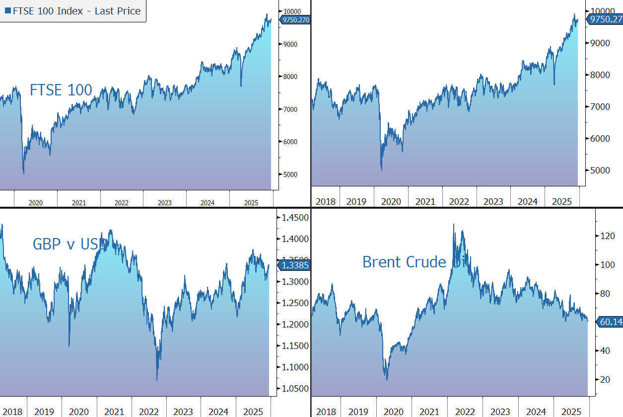 Sterling is little changed at $1.3370 and €1.1380 following a raft of economic data. The UK unemployment rate rose to 5.1%, while wage growth slowed to 4.6% in three months to October. A Reuters poll of economists had mostly expected regular wage growth of 4.5%. The Bank of England is watching pay as a gauge of how long Britain’s high rate of inflation is likely to last. The Bank is expected to cut interest rates to 3.75% from 4% on Thursday. Investors and analysts expect one or possibly two more cuts in 2026. The 10-year gilt currently yields 4.50%.