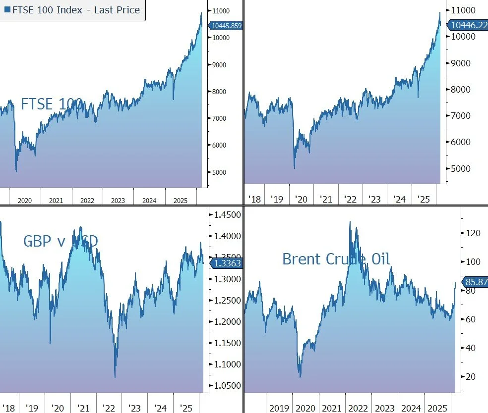 The FTSE 100 is currently 0.3% higher at 10,446, while Sterling trades at $1.3370 and €1.1520. Gilt yields continue to tick higher – the 10-year is currently 4.51%. Markets now assign only about a 20% probability of a rate cut this month and anticipate only a single 25-basis-point reduction in borrowing costs over the course of the year.