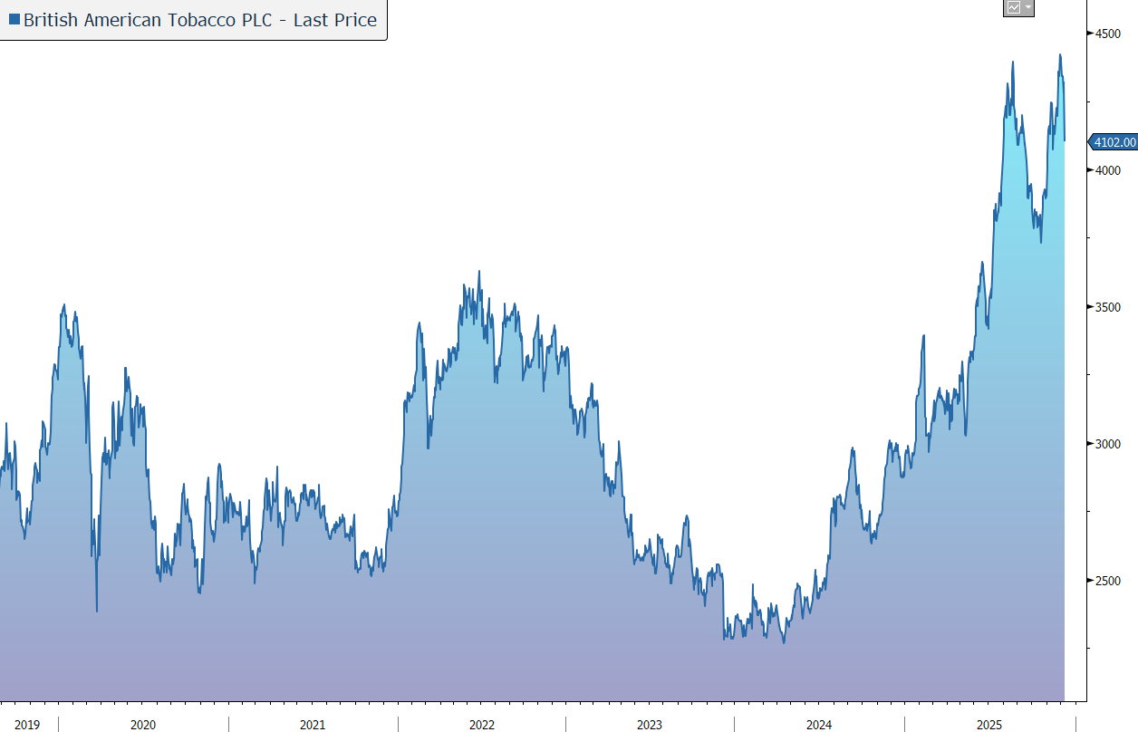 This morning, BAT has confirmed its full-year 2025 guidance. Revenue is expected to grow by around 2%, versus previous guidance to be at the top end of a 1%-2% guidance range. Adjusted profit from operations is also expected to grow by around 2%, versus a 1.5-2.5% guidance range. This is at a time when the global tobacco industry volume is expected to be down by around 2%.