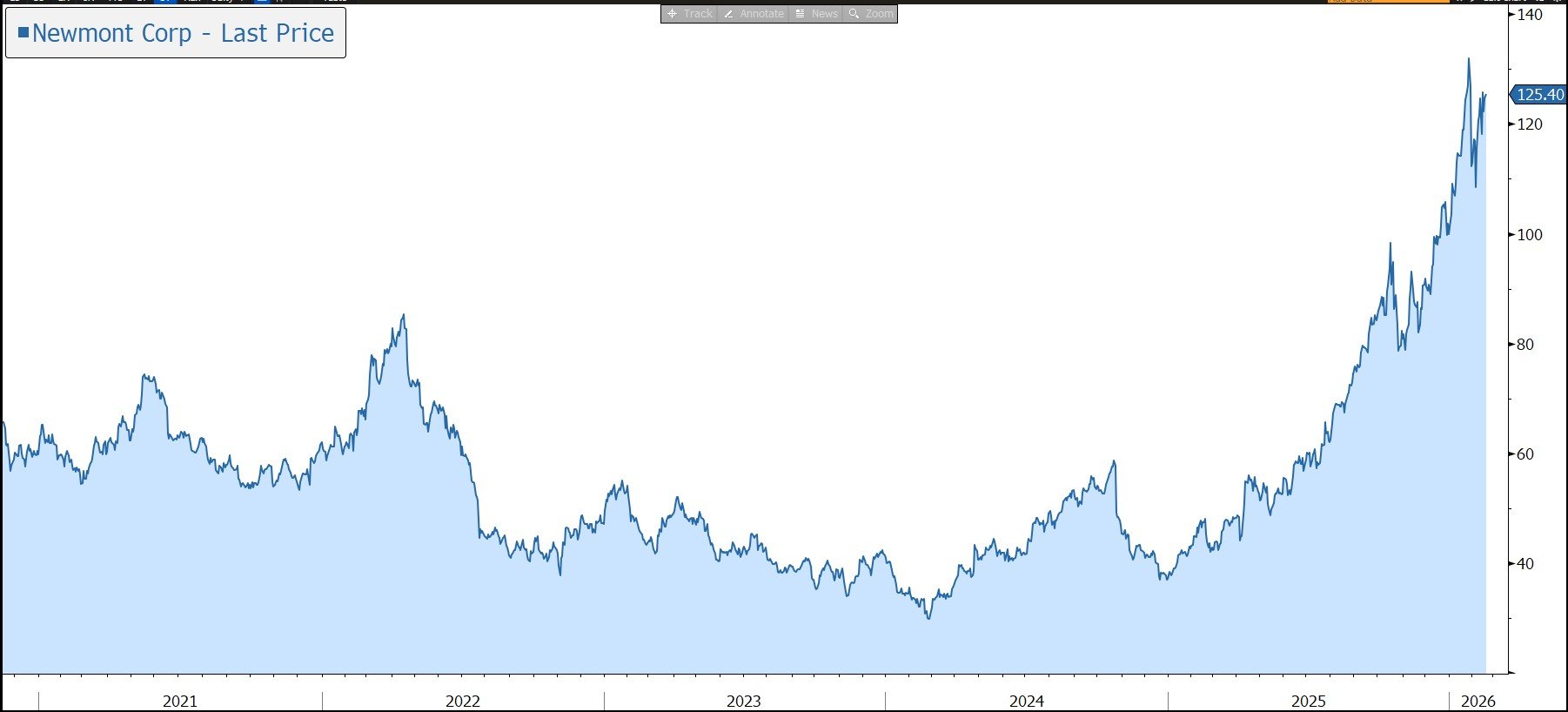 Yesterday lunchtime Newmont Corp. released full-year 2025 results which came in above market expectations driven by the strong gold price and good cost control. Despite a decline in production, the business delivered a record $7.3bn in free cash flow and continued to return capital to shareholders. The company also provided 2026 guidance – seen a trough year – and announced an enhanced capital allocation framework. Production is expected to dip again in 2026, while costs are projected to rise. In response, the shares fell by 3%.
