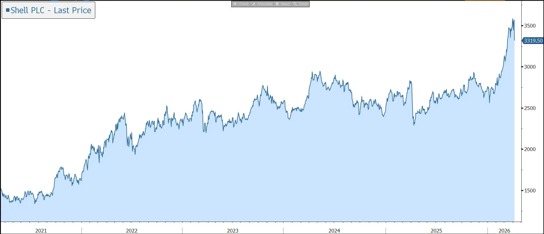 LNG - Shell has 30% interest in QatarEnergy LNG N(4) equating to 2.4 MTPA of equity production. QatarEnergy shut in production on 2 March across all LNG facilities and subsequently declared force majeure. The asset was not impacted during the attacks on 18 March.