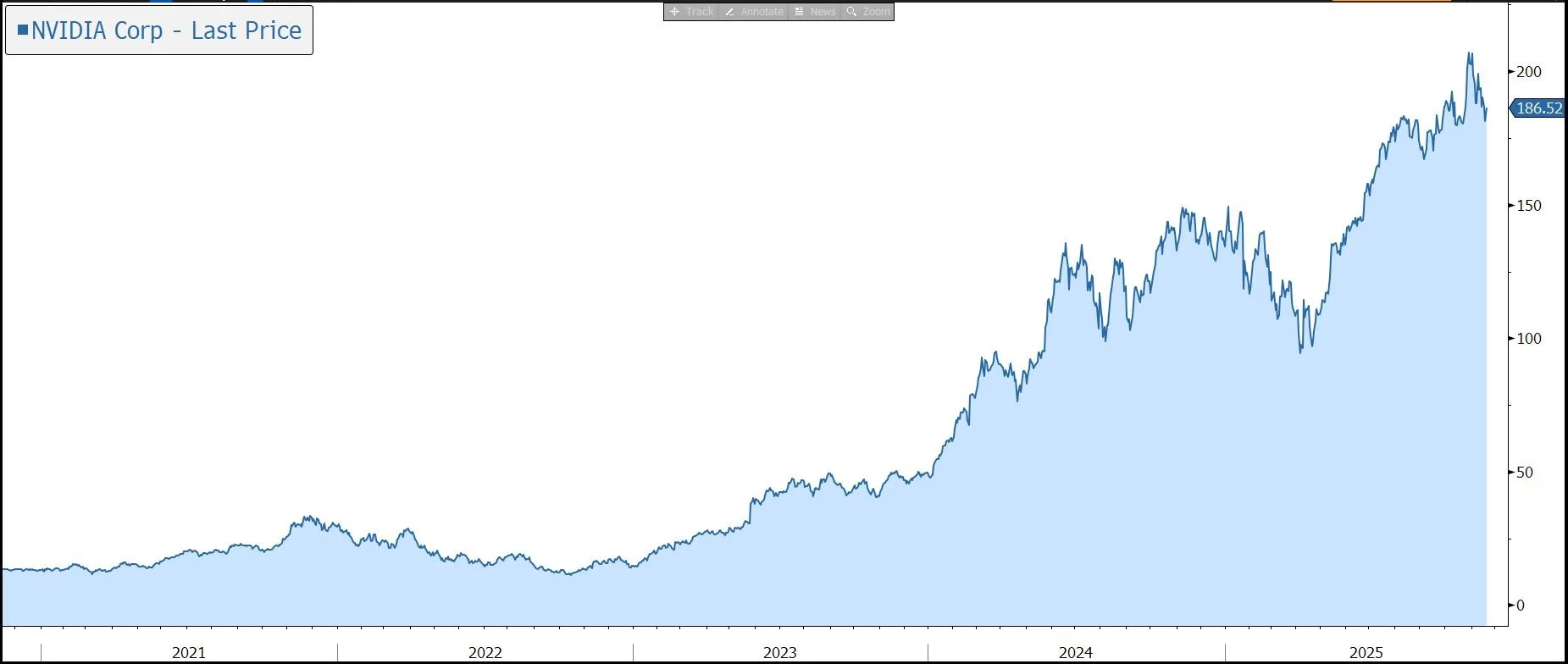 Last night NVIDIA released results for the three months to 31 October 2025, the third quarter of its financial year to January 2026. The figures came in above expectations and guidance for revenue in the current quarter was above the market forecast. The announcement eased concerns about an AI bubble and in response the shares moved up 5% in after-hours trading.