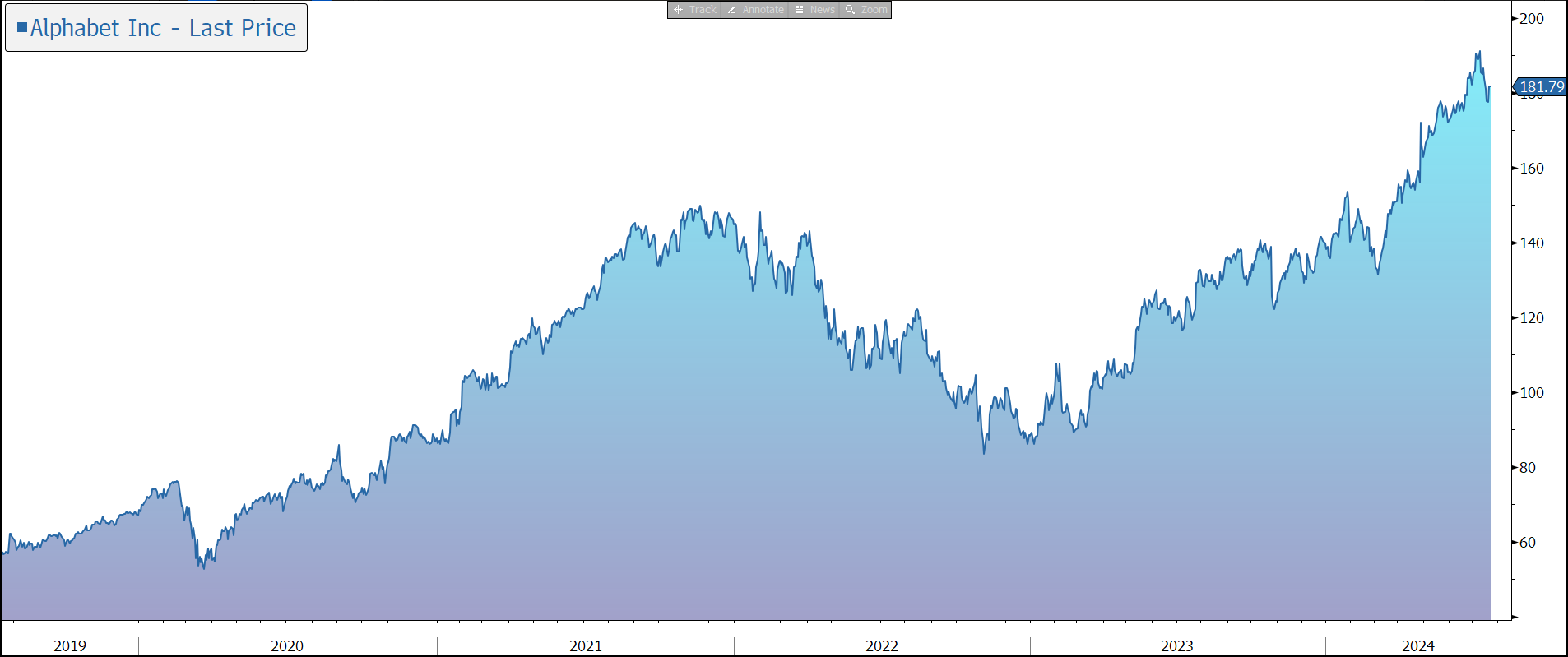 Alphabet is the public holding company for Google, one of the world’s most recognised and widely used brands. In addition to the core search engine, the group owns digital video platform YouTube, Google Cloud, web browser Chrome, mobile operating system Android, Gmail, Google Maps, Fitbit, and autonomous driving company Waymo, among others.