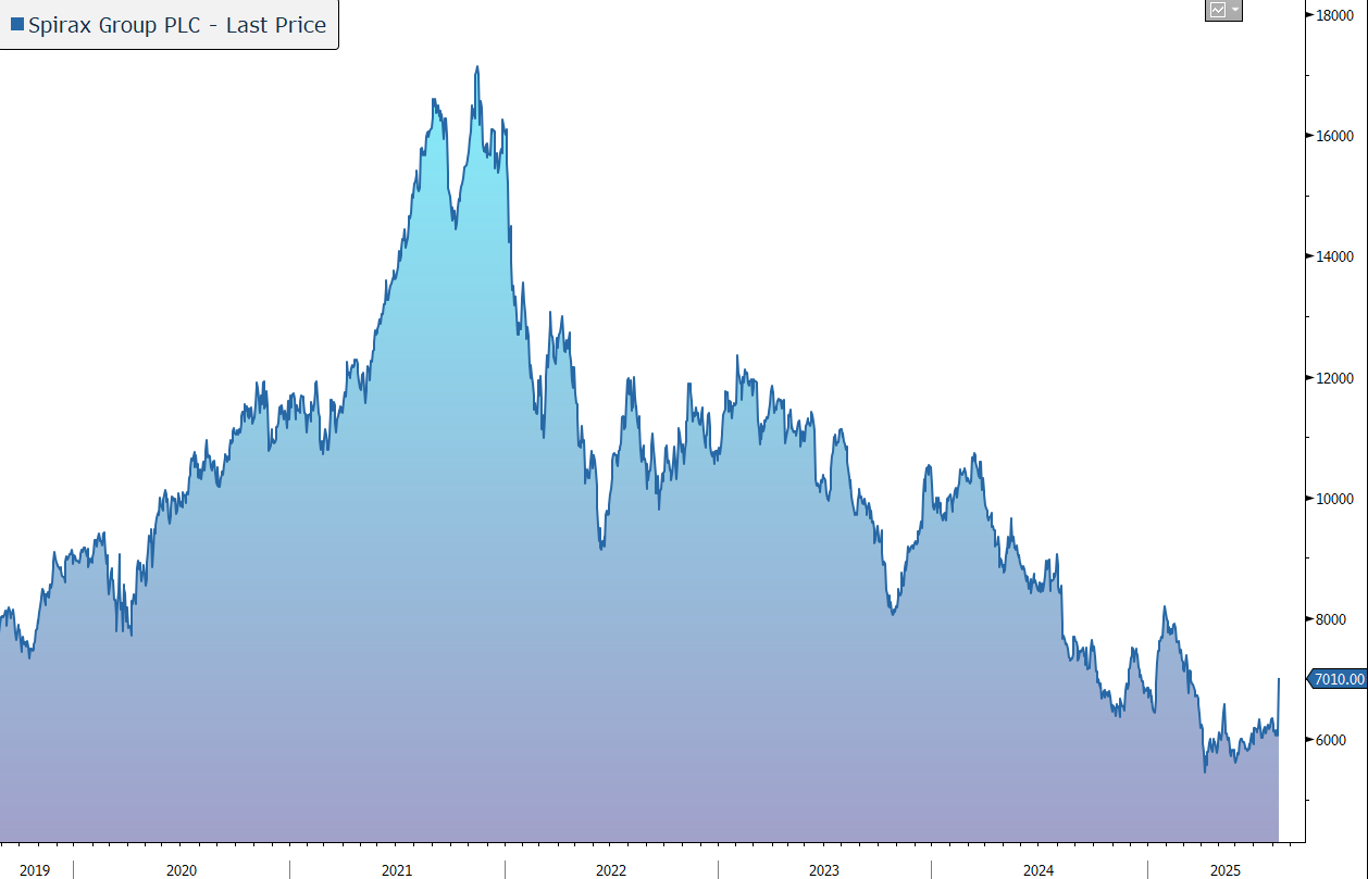 Spirax Group has released its results for the first half of 2025. Despite the challenging macroeconomic environment, the company generated a resilient sales performance and enhanced its margin. Guidance for the full-year was confirmed, with sales growth expected to accelerate in the second half. In response, the shares are up 15% in early trading.