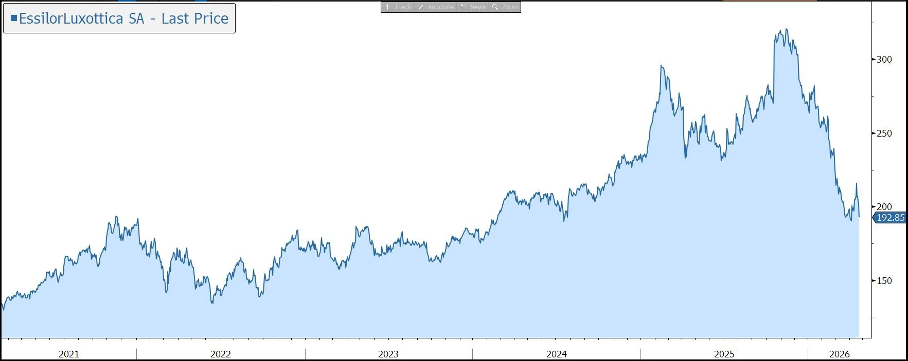 A further near-term headwind has arisen as a result of Leonardo Maria del Vecchio’s bid to consolidate a 37.5% stake in Delfin aiming to end years of family deadlock. Controlling Delfin’s 32.3% holding in EssilorLuxottica would provide a stable governance anchor, unlock higher dividend payouts, and accelerate the MedTech pivot.