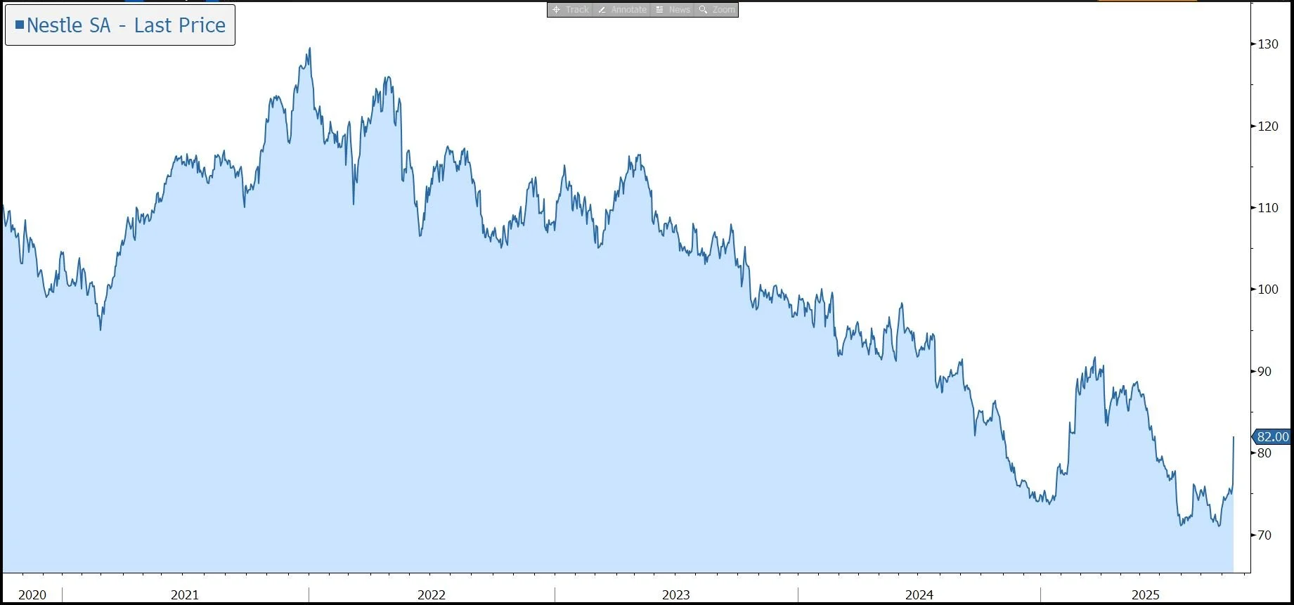 Nestlé has this morning released results for the first nine months of 2025 which were better than the market forecast as the benefit of increased investment starts to flow through. The company has also increased its cost savings target. In response, the shares have been marked up by 7% in early trading.