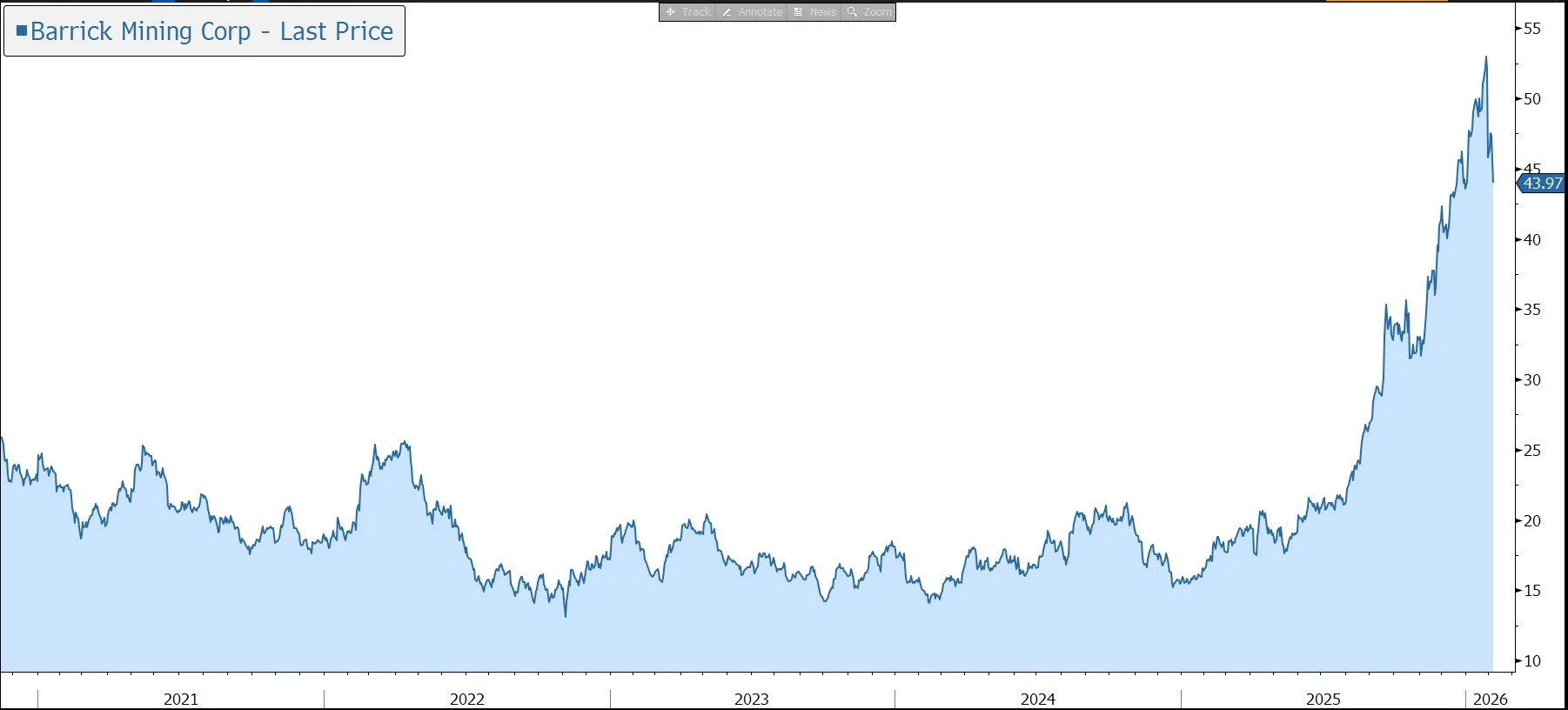 Yesterday lunchtime, Barrick Mining Corporation released Q4 results which were well ahead of market expectations. Strong commodity prices and controlled costs generated record cash flow despite lower gold production. This allowed the company to significantly increase its dividend and share repurchases, while also making progress on key growth projects. The shares have been a very strong performer over the last year, albeit have seen profit taking of late on the back of the falling gold price.