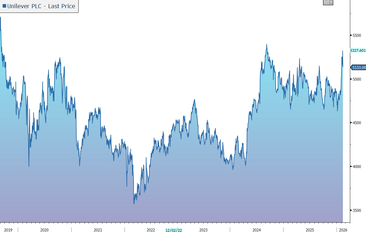 Unilever has released solid 2025 full-year results. On the positive note, volume growth continued to improve, the operating margin came in ahead of expectations, and a new €1.5bn share buyback programme has been announced. The main dampener was the cautious guidance for 2026, to be at the bottom end of its 4-6% sales growth range. In response the shares are down 1% in early trading, giving up some of the gains made so far this year.
