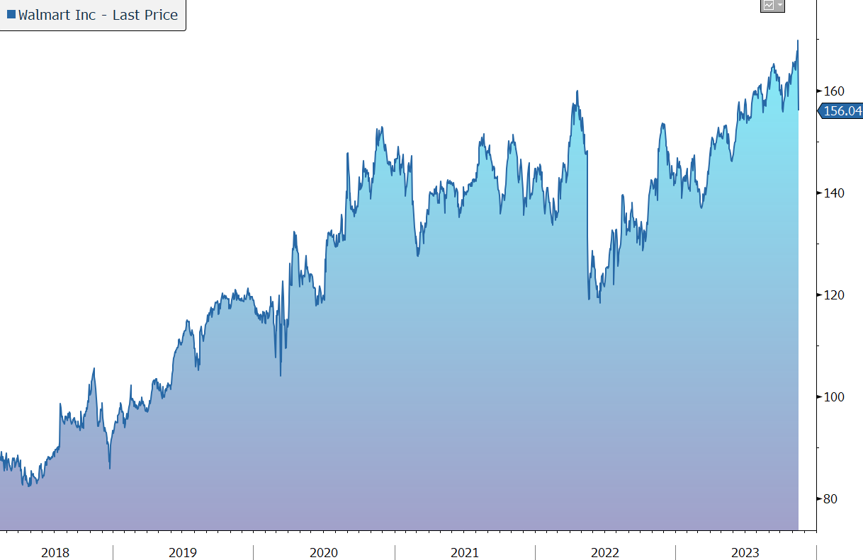 Yesterday lunchtime, Walmart released results for the third quarter of its financial year to end January 2024 that were in line with market expectations and raised its full-year guidance. However, commentary on the call regarding weak trading in the last two weeks of October spooked investors, sending the shares down 8%.